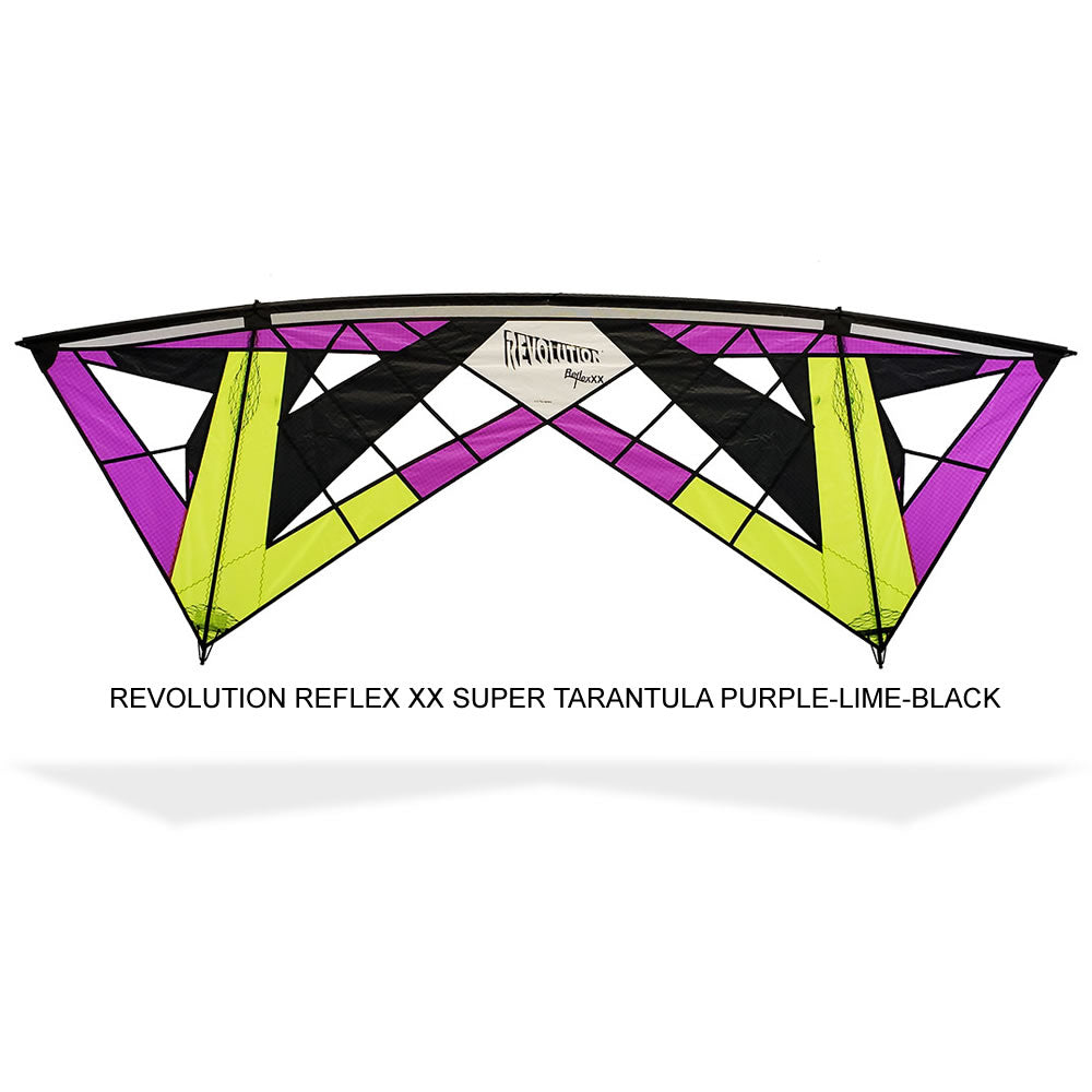 Revolution’s Reflex XX Super Tarantula is a fully vented version of the XX. Venting allows for higher wind conditions up to 40KPH, while the 'no screen' venting reduces weight allowing for lighter conditions, down to 12KPH. 'No screen' venting also allows for faster reverse flying, smoother 'Floats' (Club 38 skill 26) and a lighter, more responsive touch!